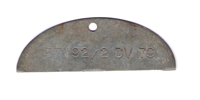 Eine Anfrage bei der zuständigen Dienststelle WaSt (früher: Wehrmachts-Auskunftsstelle, heute kurz: „Deutsche Dienststelle“) in Berlin Eichborndamm 179 ergab, dass es sich um den unteren Teil der Erkennungsmarke eines Mannes aus dem sogenannten Volkssturm (DV) mit der persönlichen Kennzahl 79 handelt.