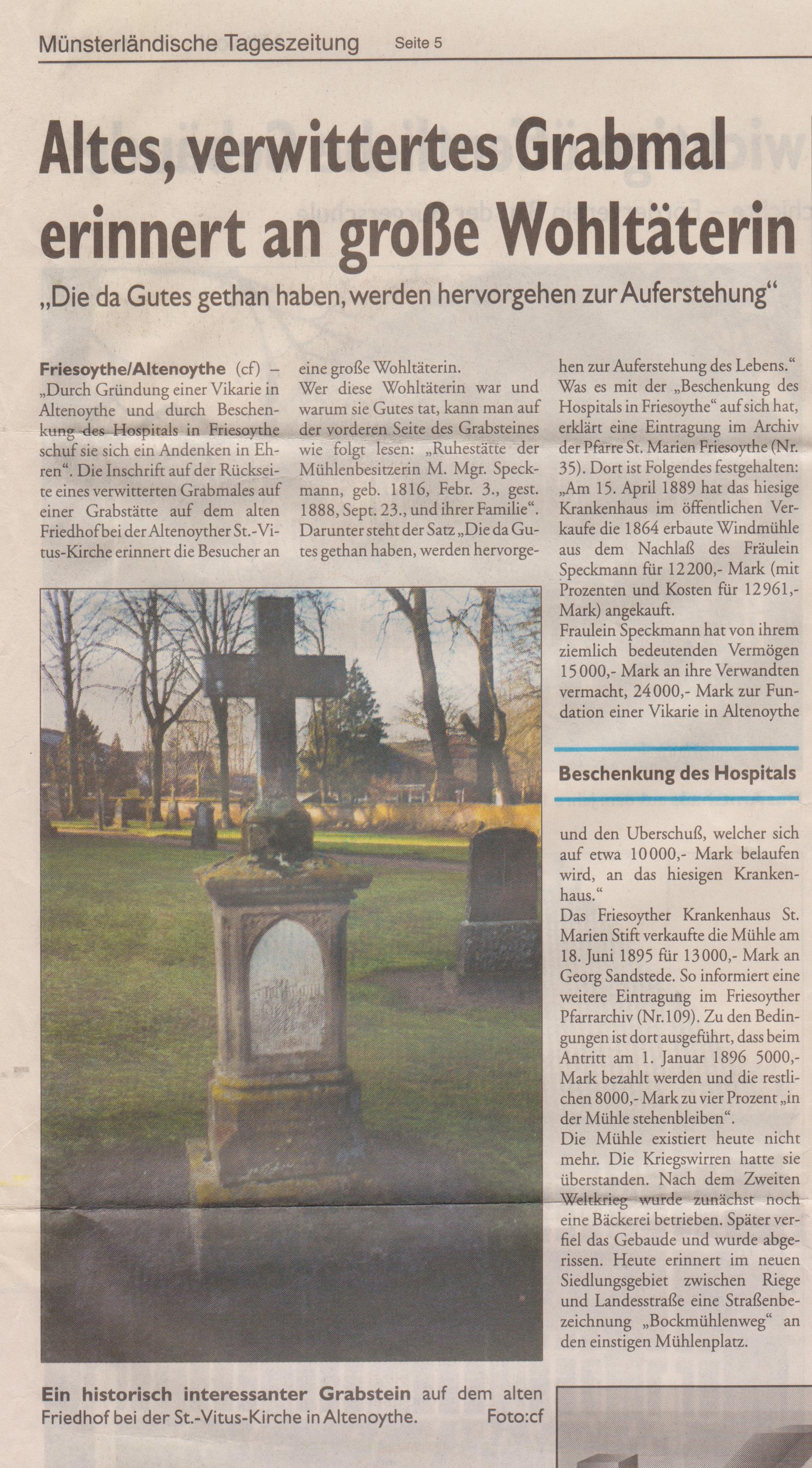 29. Das Grabmal der Mühlernbesitzerin Speckmann