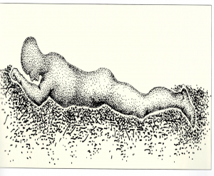 Rekonstruktionszeichnung nach Berichten der Lage des Mannes im Moor nach H. Hayen, 1