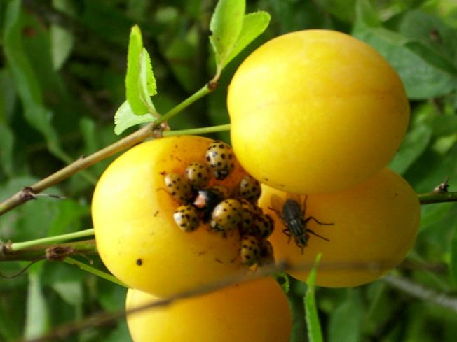 Der Käfer macht sich mit Vorliebe über reifes Obst wie z.B. Brombeeren und Mirabellen her. Es bleibt abzuwarten, welche Art Marienkäfer die Oberhand gewinnt. Aber dadurch, dass der asiatische Marienkäfer die größere Auswahl an Fressmöglichkeiten hat, scheint diese Frage wohl schon beantwortet.