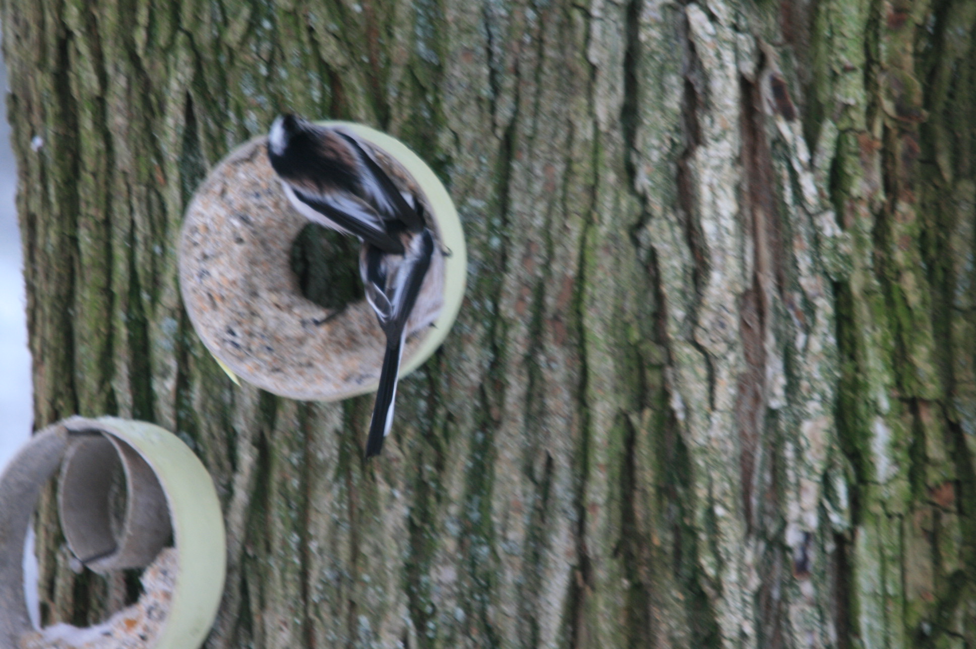 Die Schwanzmeise zieht außerhalb der Brutzeit in kleinen „Trupps“ übers Land. So ein Trupp hielt sich auch einige Tage an der Futterstelle auf unserer Terrasse auf.